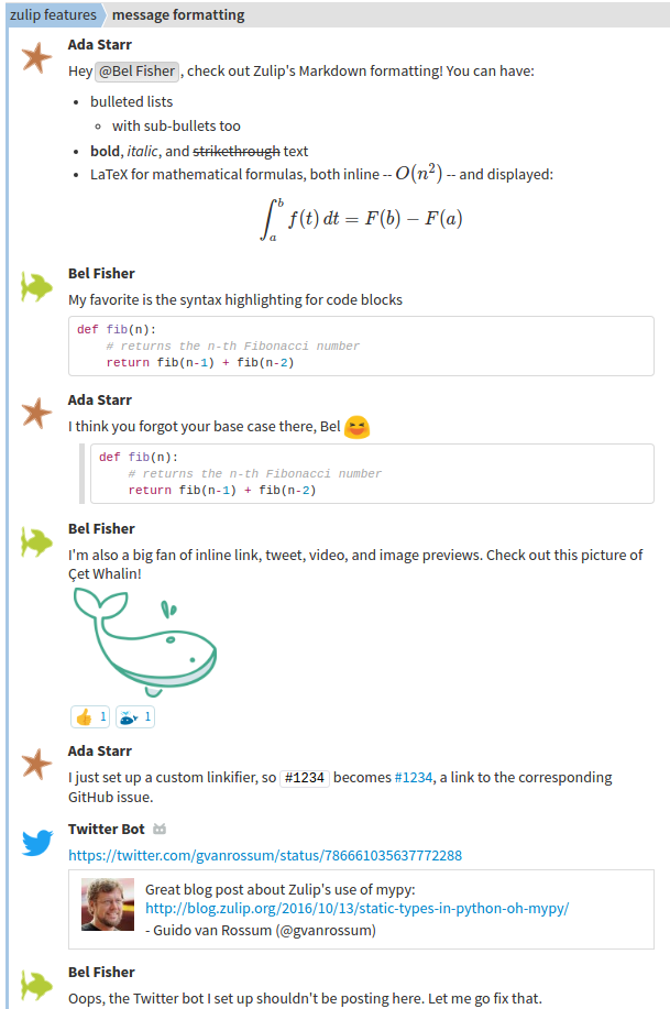 Use Zulip to store directory information, links to social media profiles, food preferences, or anything else.
